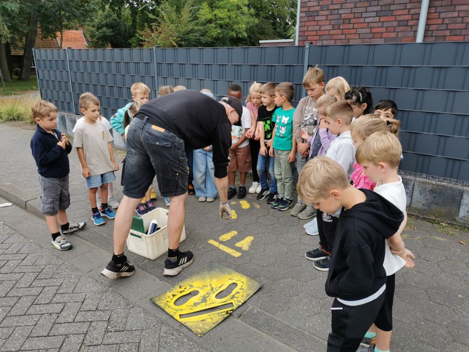 Zu Beginn des Schuljahres durften alle Kinder der ersten Klassen an der "gelben Füße-Aktion" teilnehmen. Dabei wurde auf wichtige Straßenübergänge an der Schul…