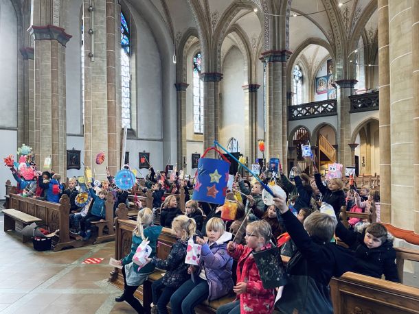 Stolz präsentierten die Kinder der ersten Klassen und des SKG am 11.11.2022 ihre bunten Laternen be…