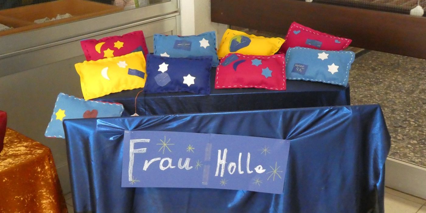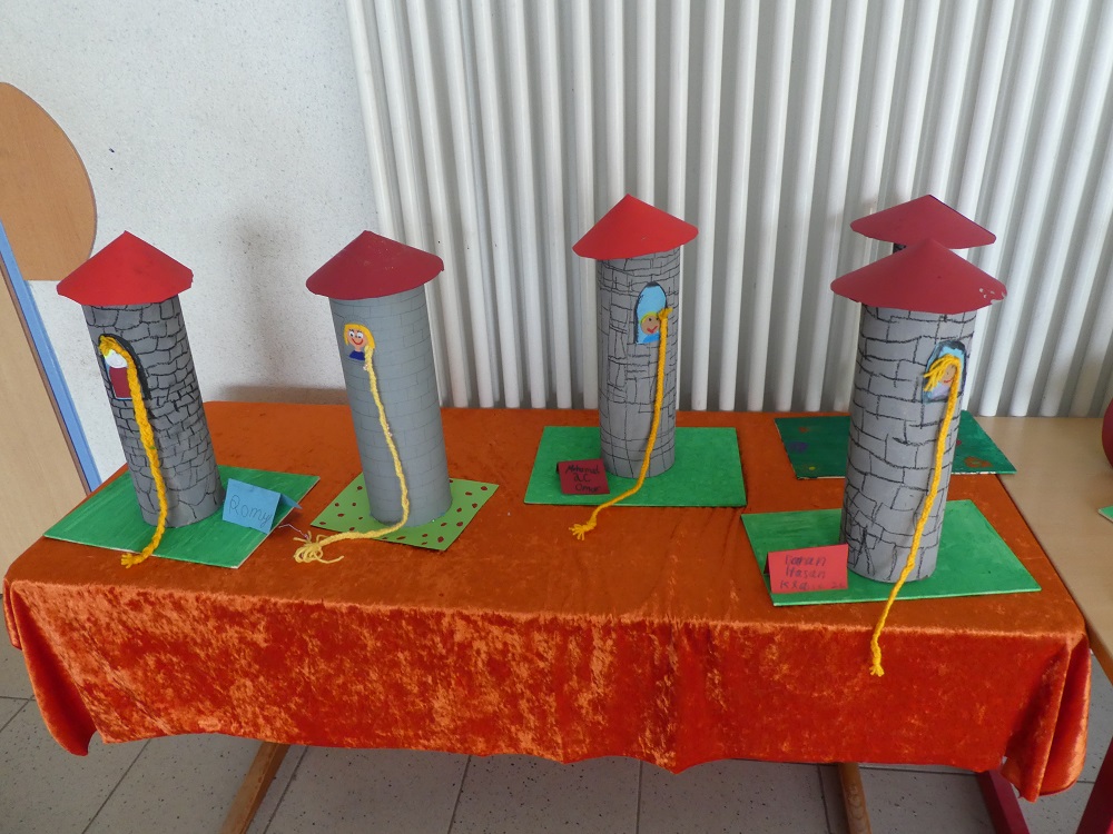 Zunächst hörten, lasen oder schauten sie die Geschichten, wie Rapunzel, Dornröschen, Tischlein deck dich, die Bremer Stadtmusikanten und Frau Holle. Anschließend gab es in den verschiedenen Gruppen ganz unterschiedliche Aktivitäten zum jeweiligen Thema. Beispielsweise spielten die Mädchen und Jungen Märchenszenen nach oder bastelten und malten Märchenorte. Weiterhin stellten sie Puppen her oder nähten eigene Kissen. Die Kinder halfen sich gegenseitig in ihren Gruppen und tauschten sich in den Pausen begeistert aus. Besonders spannend war auch der gemeinsame Tagesbeginn in der Aula, nachdem die Kinder gemeinsam gesungen hatten, erfuhren sie, mit welchem Märchen sie sich an diesem Tag beschäftigen würden.