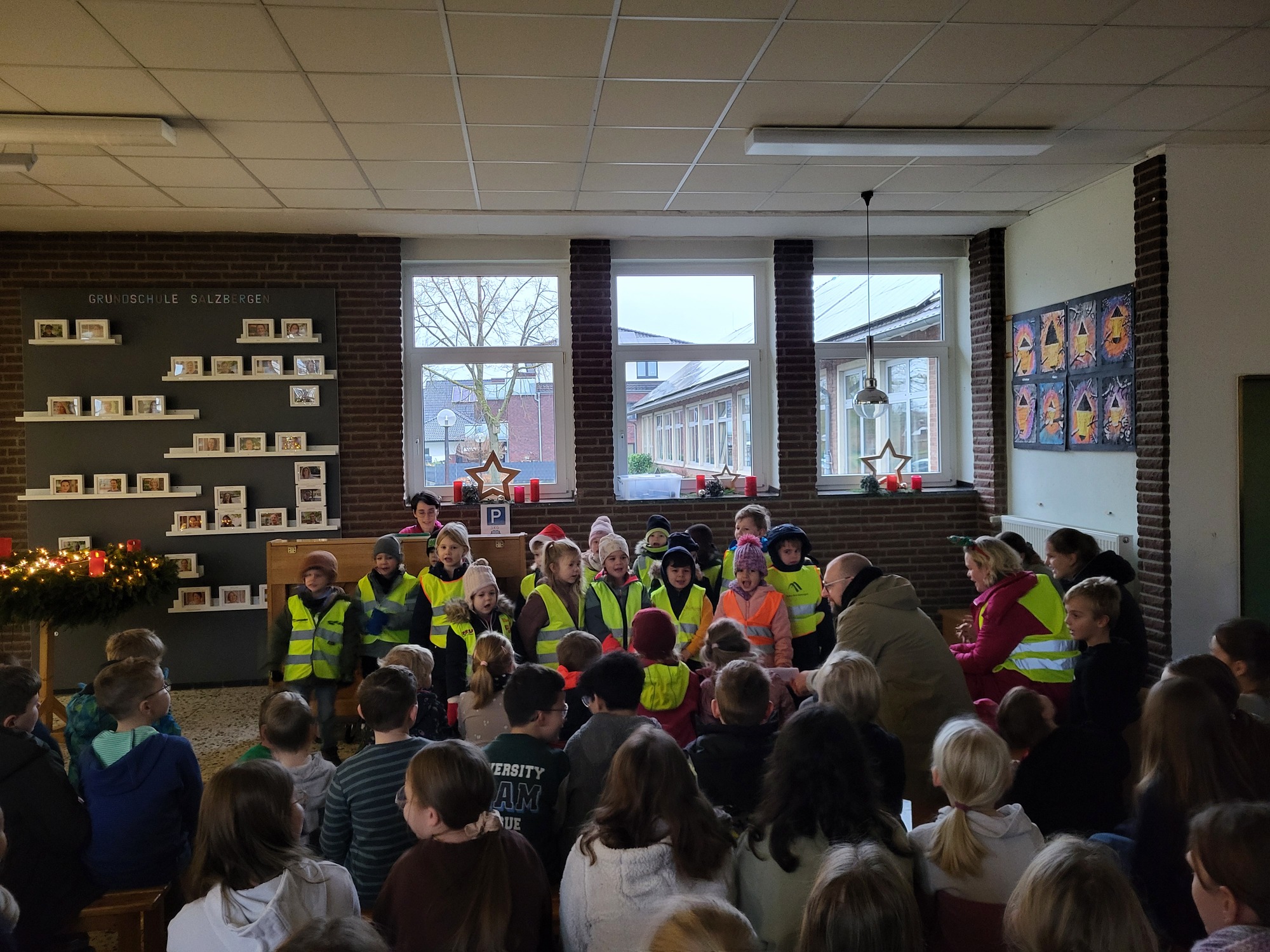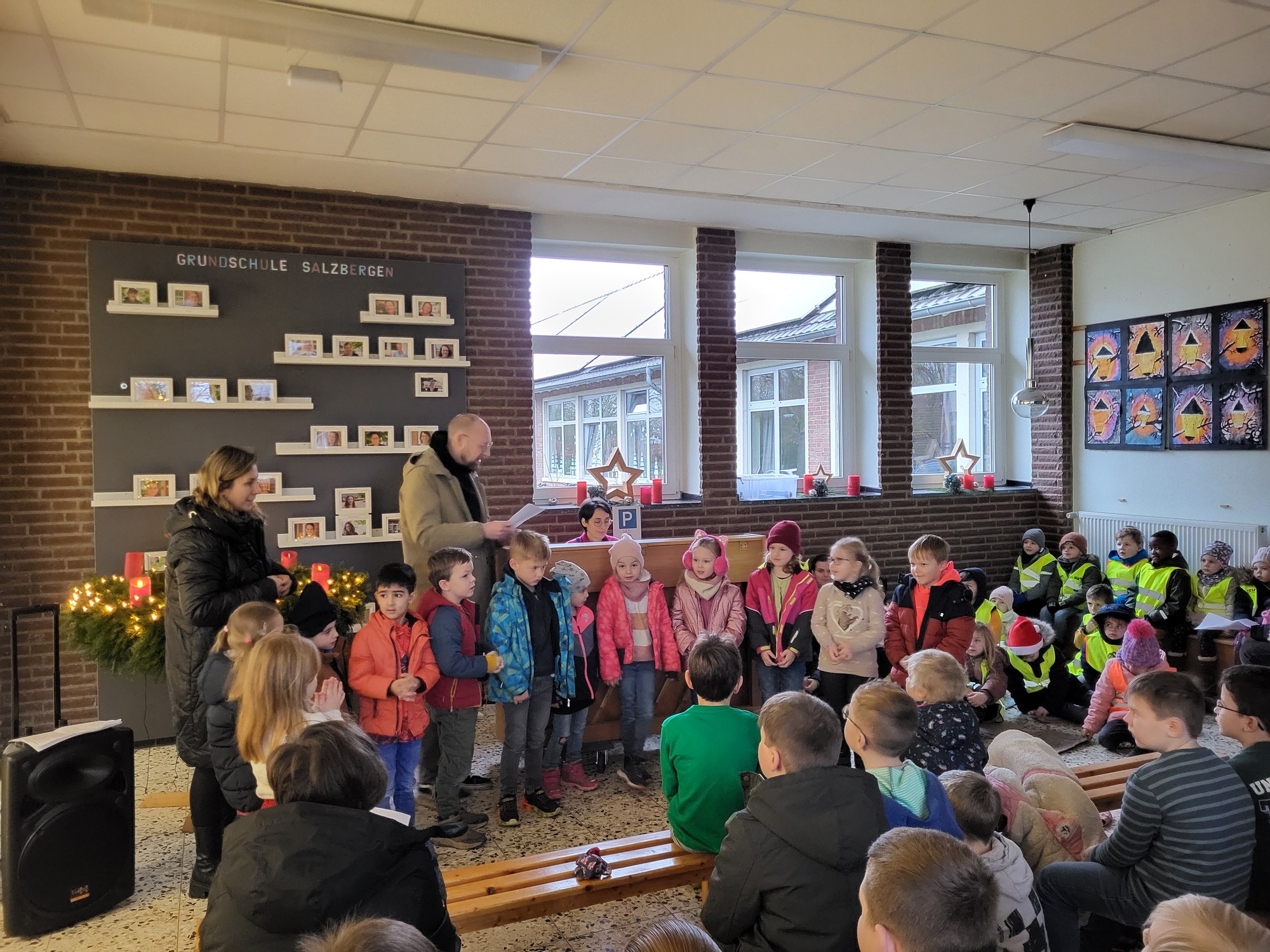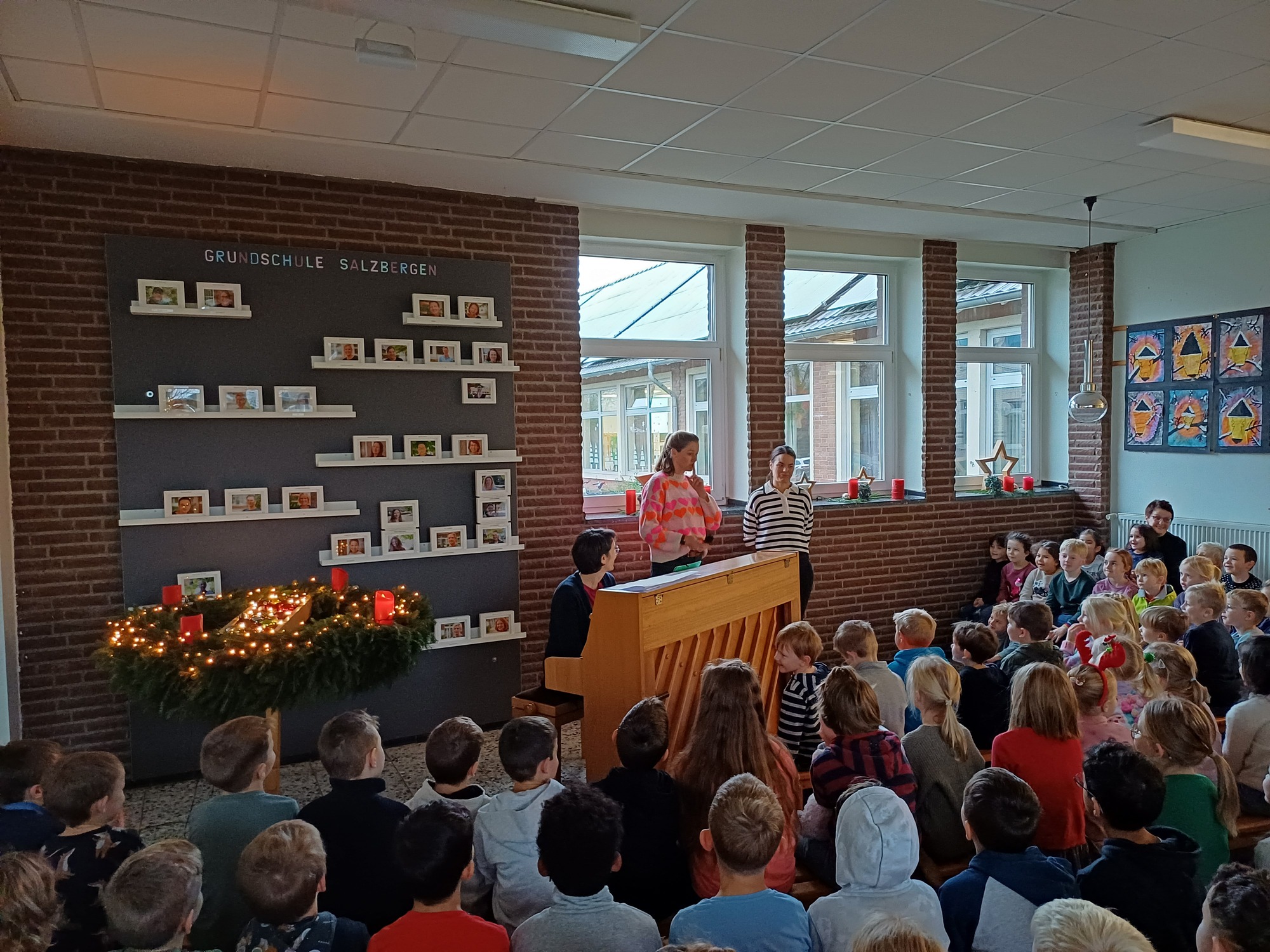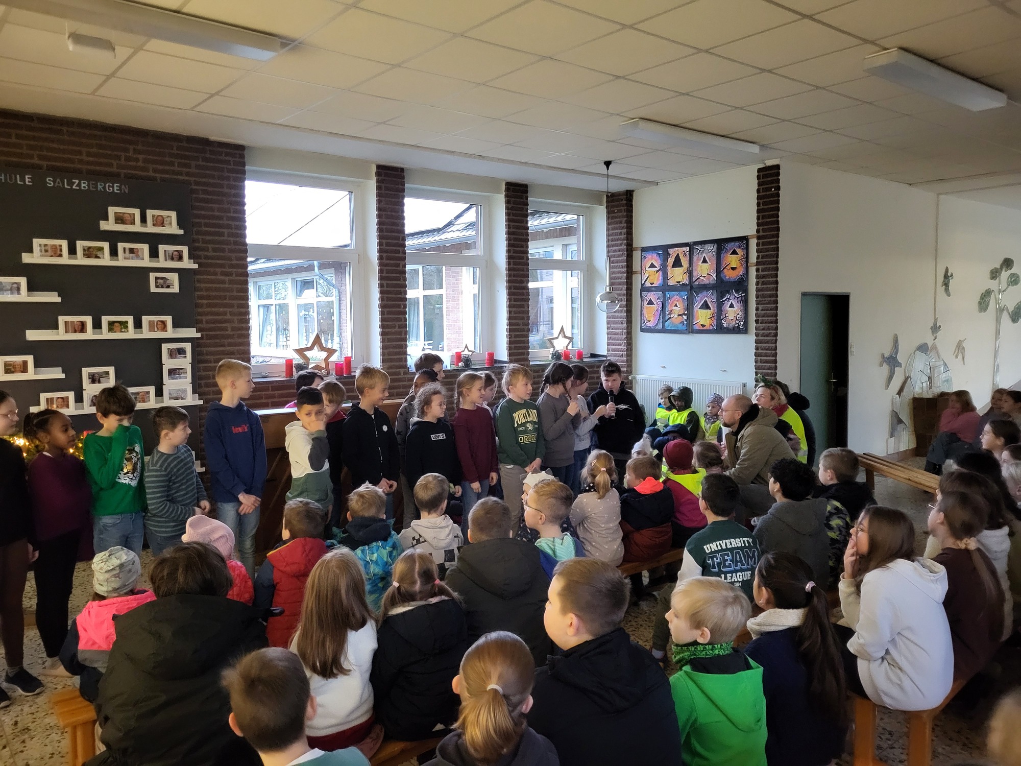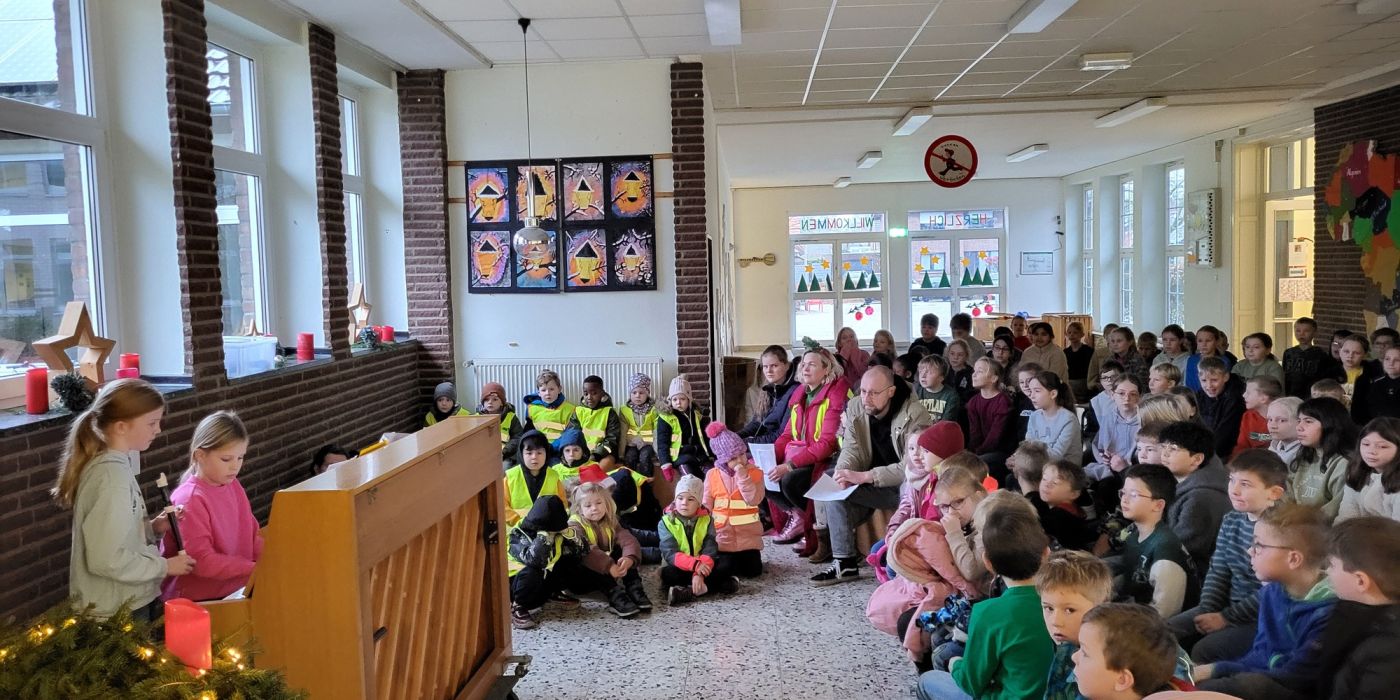 An den vergangenen zwei Montagen fand das weihnachtliche Adventssingen statt. An beiden Tagen waren die zukünfigen Schulkinder aus den drei Kindergärten zu Gast. Frau Wohlers begleitete die Veranstaltungen am Klavier. Neben dem Singen von Weihnachtsklassikern, wie "Wir sagen euch an den lieben Advent" oder "Es schneit", wurden auch Gedichte vorgetragen und einzelne Schülerinnen spielten mit Instrumenten vor.