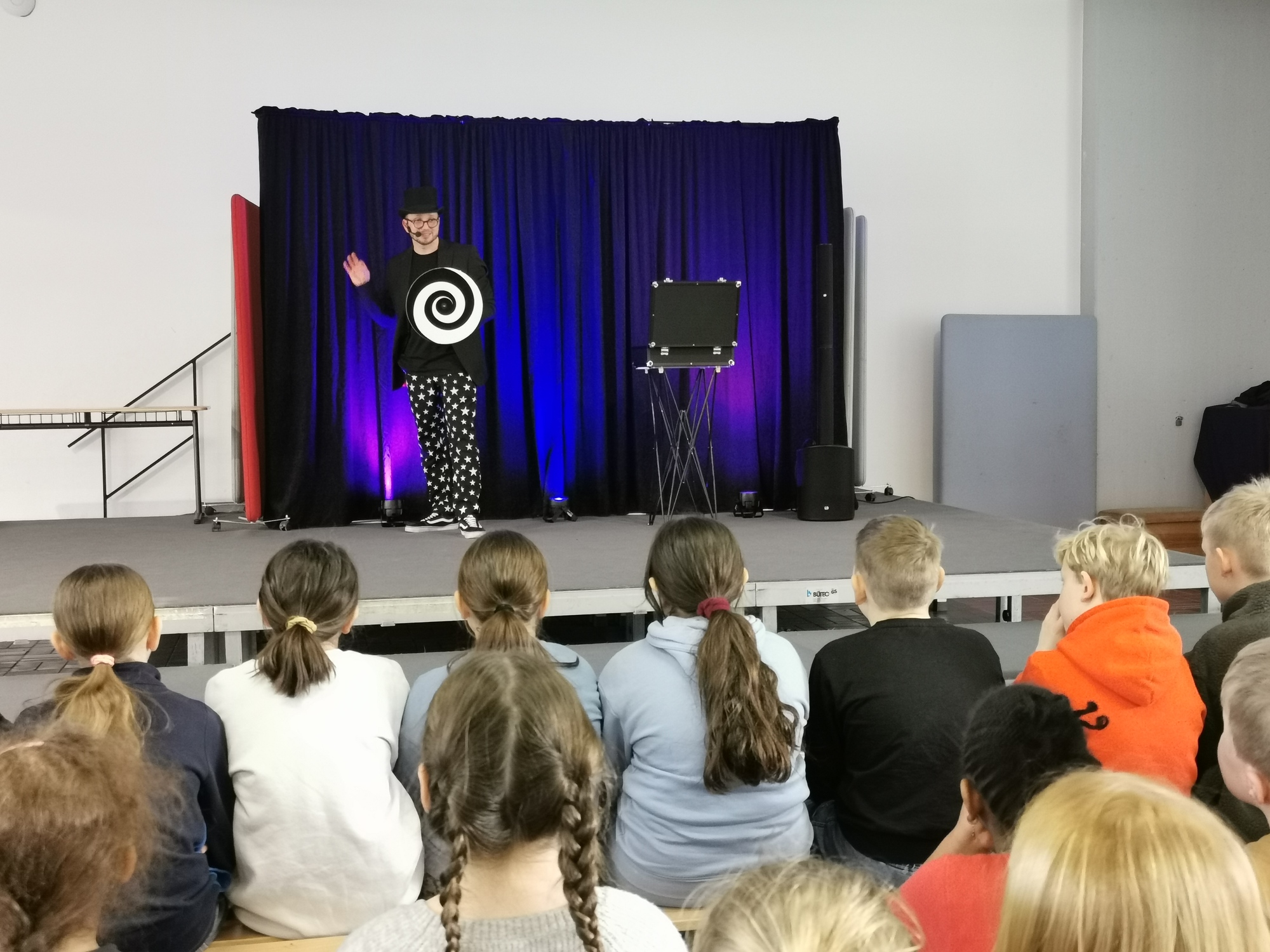 In der Woche vom 10. bis 14.02. hatten wir zauberhaften Besuch. Der Zauberer Oliver Jelias leitete die Projektwoche „Zaubern“. Am Montag stellte sich der Zauberkünstler vor und zeigte eine Zaubershow für alle Kinder. Sowohl Schüler als auch Lehrer staunten nicht schlecht, als Oliver beispielsweise seinen Kopf abwechselnd größer und kleiner werden ließ. Im Laufe der Woche lernten die Kinder in den einzelnen Jahrgängen verschiedene Zaubertricks, die sie dann für die große Zaubershow am Freitag kräftig üben mussten. Außerdem wurde eifrig gebastelt und gemalt, um die Klassenräume und Flure zu schmücken. Viele Kinder haben in ihren Klassen auch eigene Zaubertricks gezeigt, die sie zu Hause gelernt hatten.