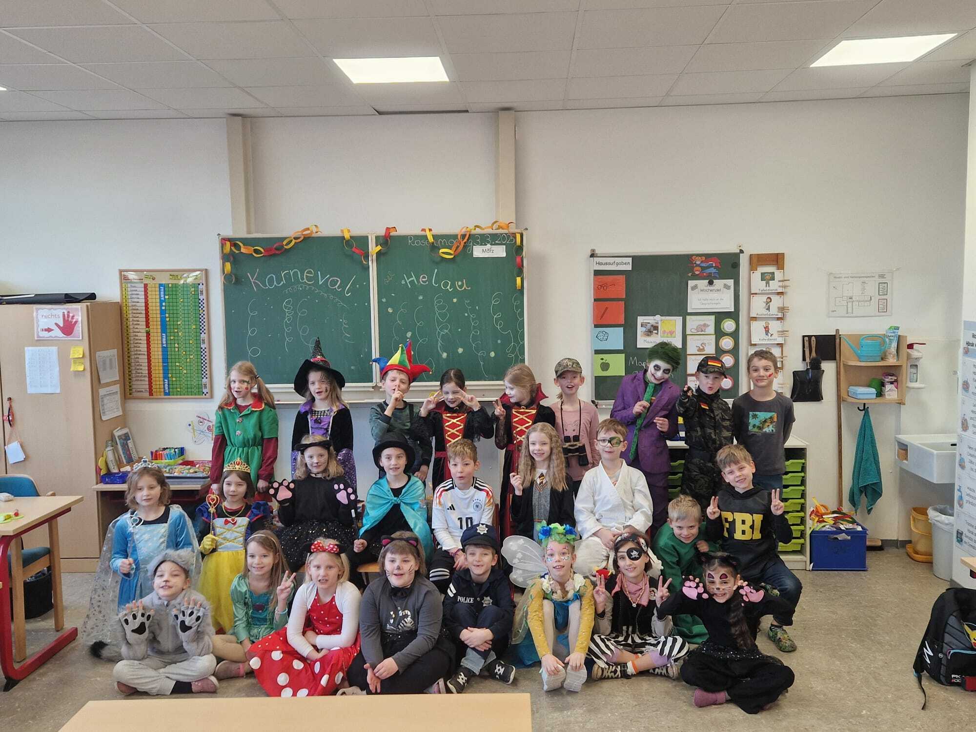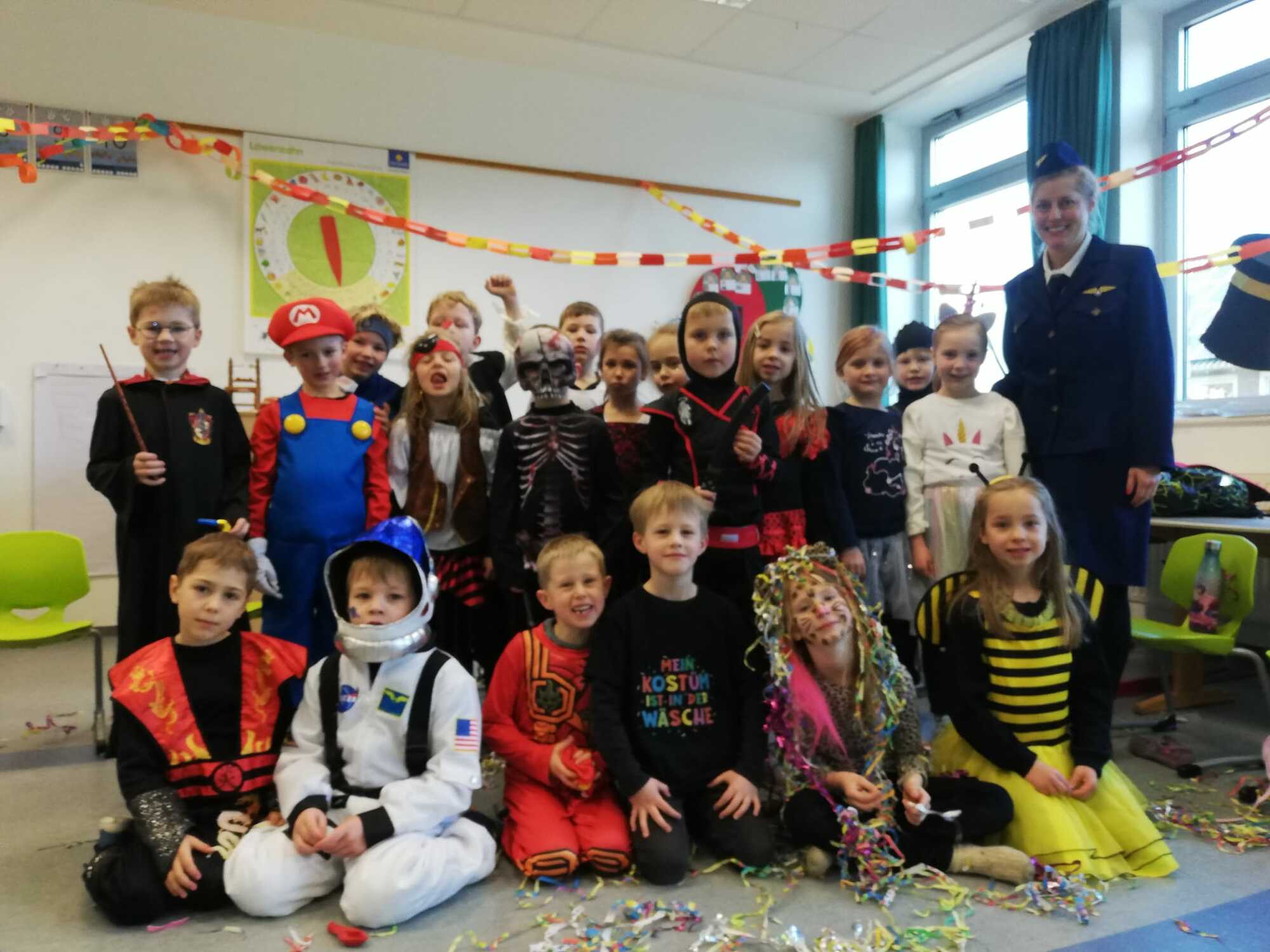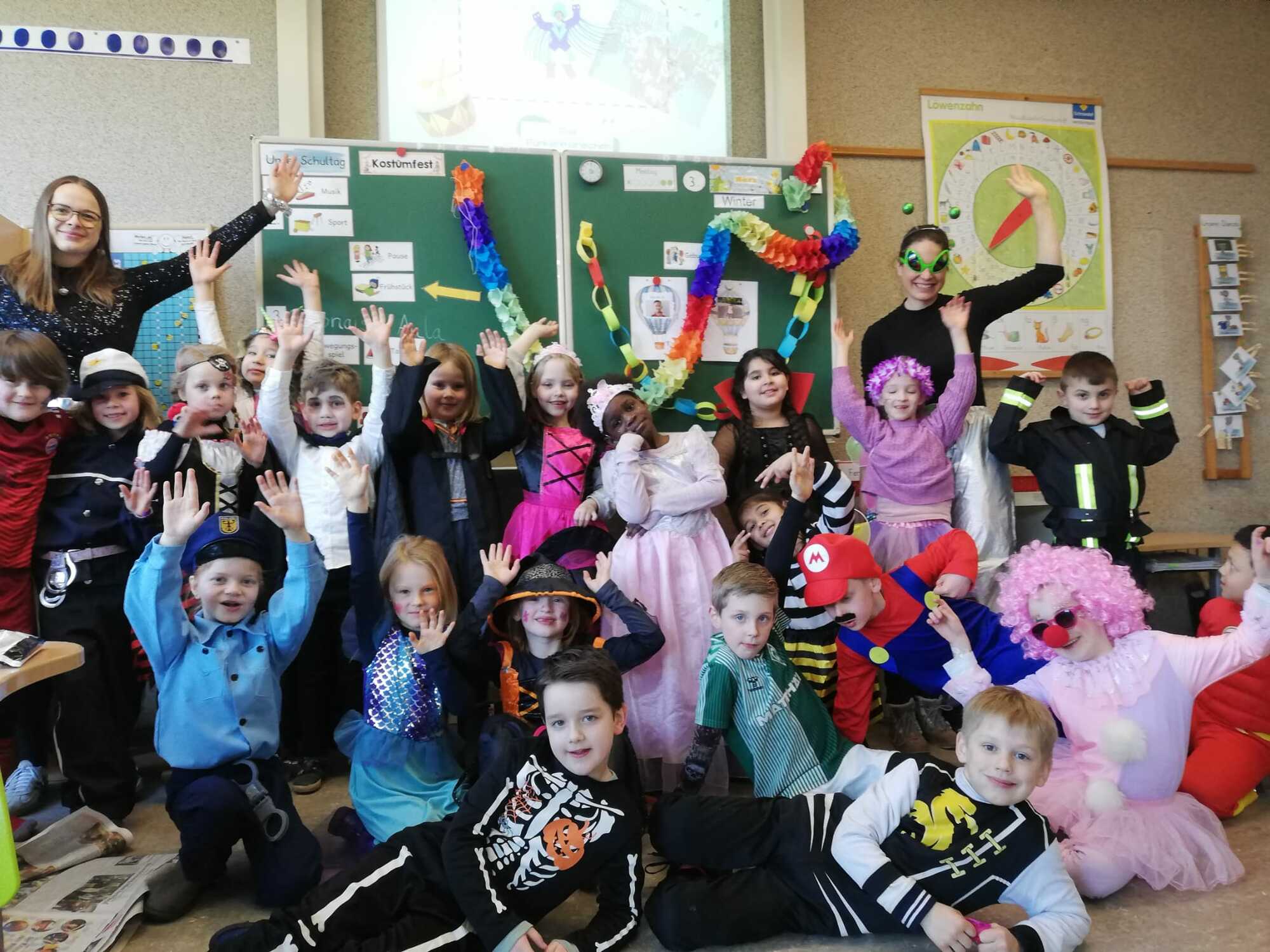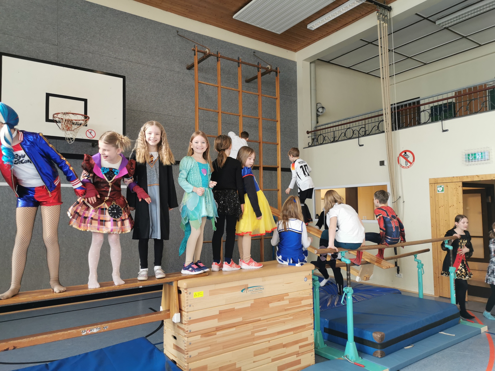 Am 03.03. feierten wir wieder Karneval in der Schule. Die Klassenräume wurden geschmückt und Leckereien aufgetischt. Doch nicht nur in den einzelnen Klassen wurde gefeiert, sondern auch wieder mit einer gemeinsamen Polonaise durch die gesamte Schule. Dabei konnte man die Kostüme aller Kinder und Lehrer bestaunen. Außerdem durften die Kinder zwischendurch in die Turnhalle und sich in einer Bewegungslandschaft austoben.