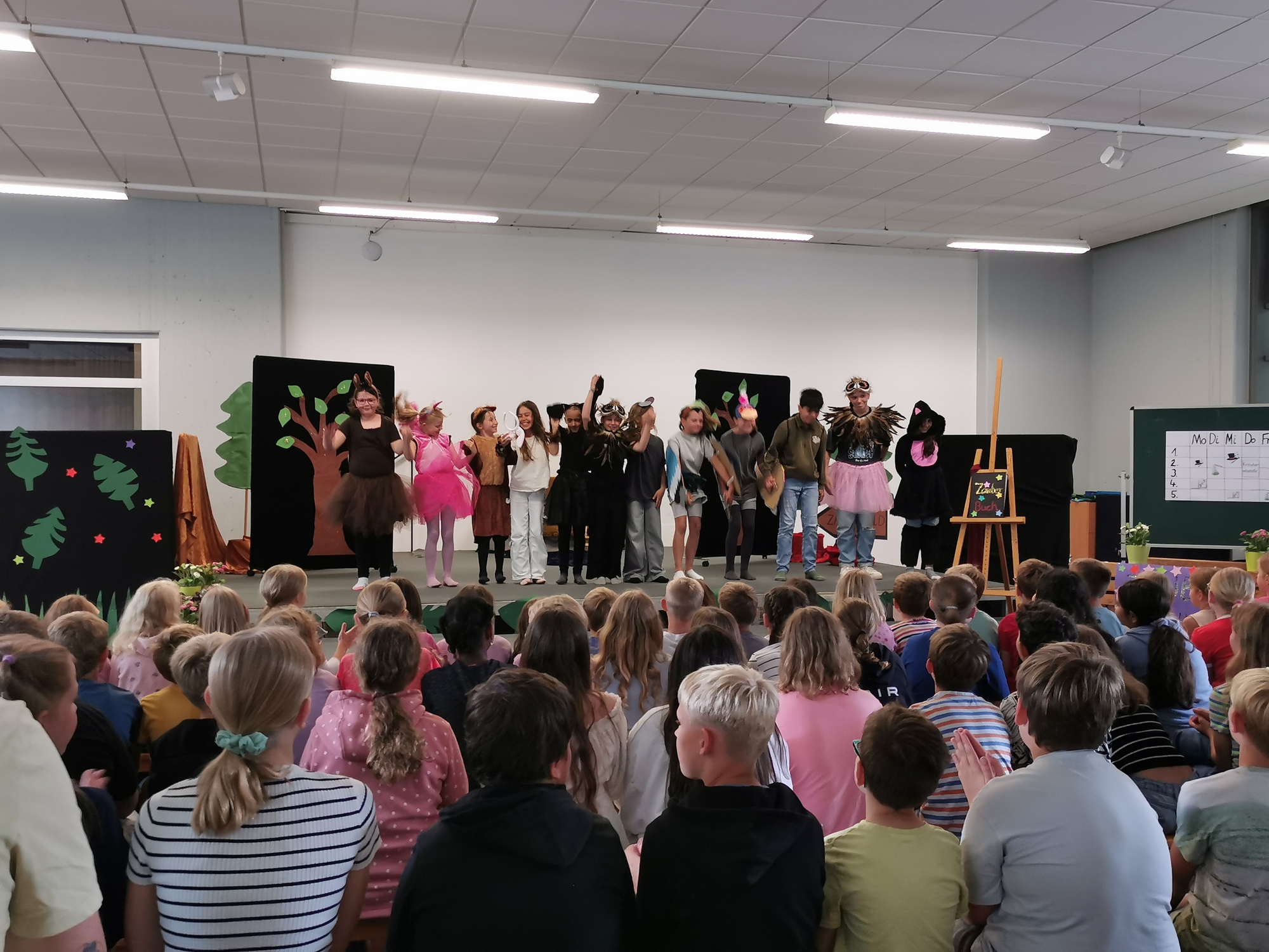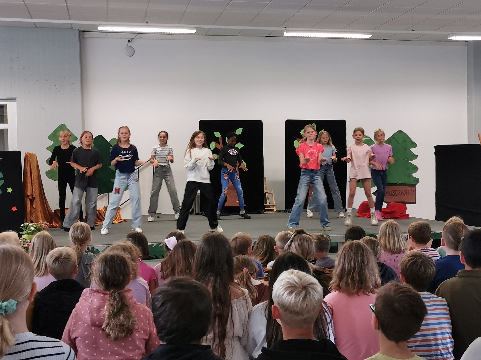Kurz vor Ende des Schuljahres kamen alle Schüler zu zwei Aufführungen der Theater-AG und der Tanz-AG in der Aula zusammen.